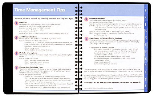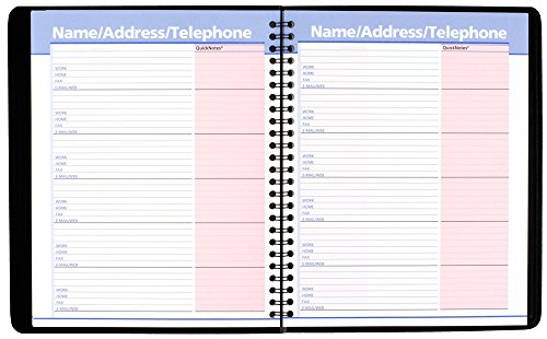 One month per two-page spread with QuickNotes column; tabbed; two past and six future months reference