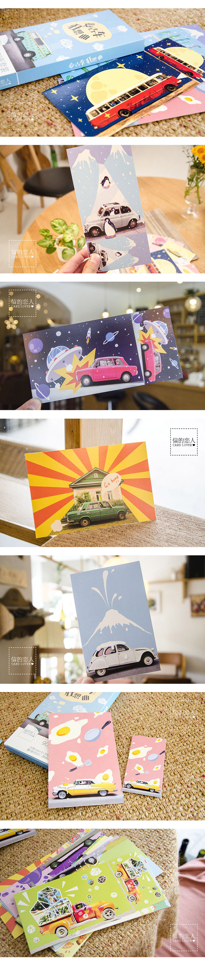唯美卡通插画明信片文艺贺卡卡片礼盒装套装90张