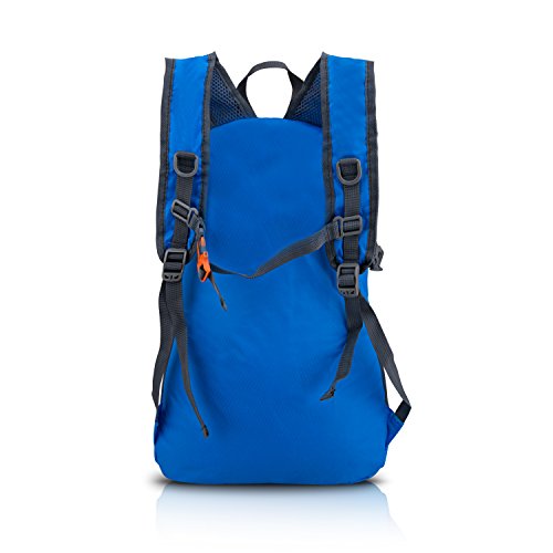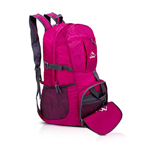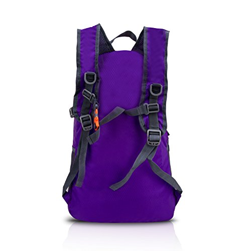 - Feature : COMPACT:Folds into zippered inner pocket to fit anywhere. Unfolds from pocket to backpack. Must have on every trip / DURABLE:The backpack is made from Diamond Ripstop and Water Resistant nylon fabric, provide strengthen and long-lasting performance with minimal weight / MULTI COMPARTMENTS:Features a classic shape with several pockets for storage and organization. This backpack has a roomy main compartment, two front zipper pockets to hold small accessories, one internal security zippered pocket for valuable items and two side pockets for water bottle or umbrella / LIGHTWEIGHT:(6.5oz) and ROOMY(35 Liters). A true space saver. Stuff the bag into its own pocket for storage---no extra fees, and unzip it when you reach your destination. Avoid overweight charges, simply unfold from your luggage and use it as a carry on for your excess baggage / Ultra-light, Ultra-durable, Ultra-awesome Backpack, perfect for day-to-day use or occasional travel, and great gift for everyone. Safety whistle buckle at fixing band where is on the shoulder straps