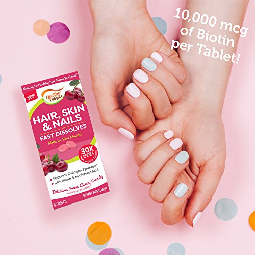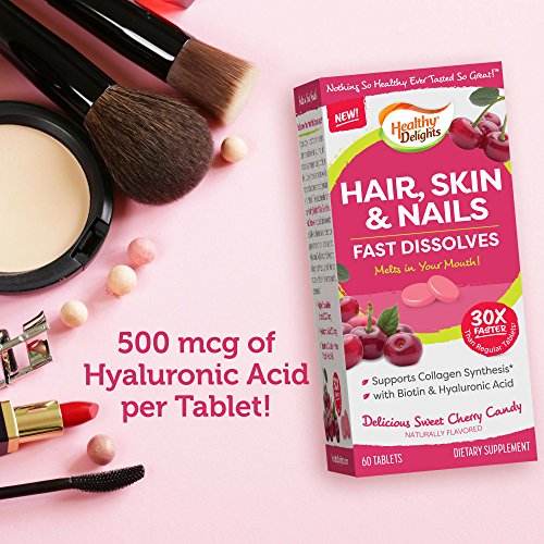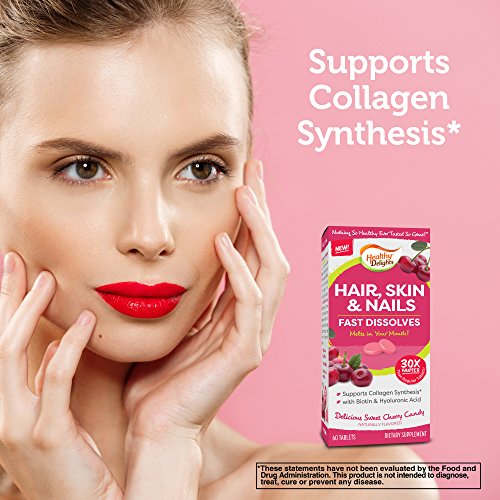 Healthy Delights Hair, Skin & Nails Fast Dissolves Delicious Sweet Cherry Candy takes the inside-out approach to beautiful hair. skin and nails.