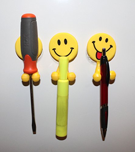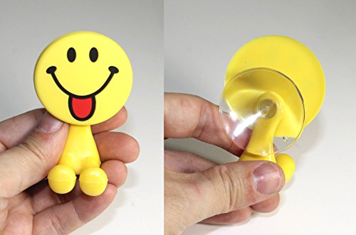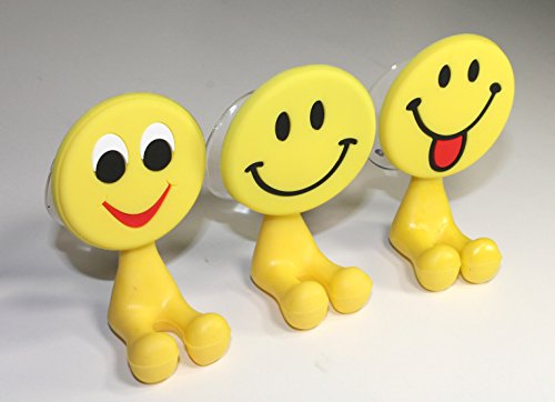 Lucore Happy Smiley Face Toothbrush Holder & Utility Suction Hook - Set of 3 Pcs Emoji Emoticon Style Rubber Wall Hanger Hooks