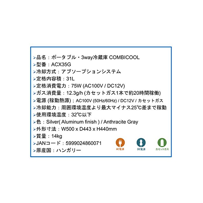 원본상품명: Dometicドメティック ACX35G COMBICOOL コンビクル クラボックス ポタブル 3WAY 冷庫 保冷庫 (AC/DC/カセットガス)