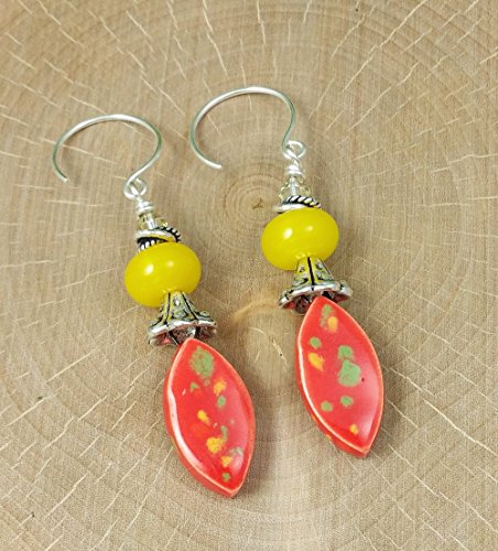 -. Brand : Fire and Fibers -. Color : fruit punch red sun yellow lime green ruby -. Department : Women -. ProductGroup : Guild Product -. ProductTypeName : GUILD_JEWELRY -. Title : 1 Pair of Dew Drops Earrings in Fruit Punch Red Sunny Yellow and Sterling Silver Lampwork Glass
