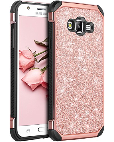 -. Title : Galaxy J7 case, Samsung Galaxy J700 2015 Case, BENTOBEN Slim Shockproof Glitter Sparkly Bling Cute Shiny 2 in 1 Soft TPU Bumper Hybrid Hard PC with PU Faux Leather Protective Phone Cover, Rose Gold