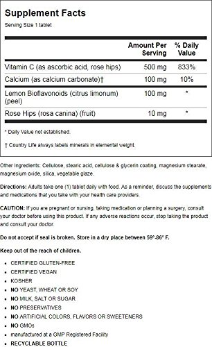 Country Life Buffered Vit C w/rose hips and citrus bio 500/100 mg, 100 tabs