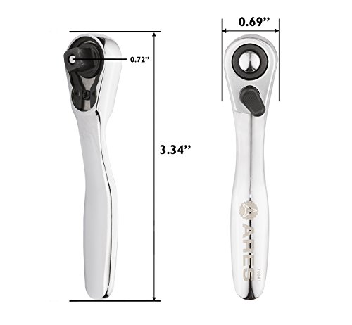 - DESIGN CONSIDERATIONS: This ratchet was originally designed for automotive use in today’s increasingly compact engines. The 72-tooth ratchet is perfect for tight spaces and needs only 5° Swivel Arc. High-strength chrome vanadium steel handle and chrome moly steel ratchet gear provide 43ft/lbs of torque. Chrome plated polish helps prevent corrosion and rust in harsh environments.
