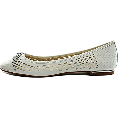 Product DescriptionThe Celindan Flat is a charming round toe flat with a dainty metallic accented bow. Perforated detailed upper Metallic accented bow detail.0