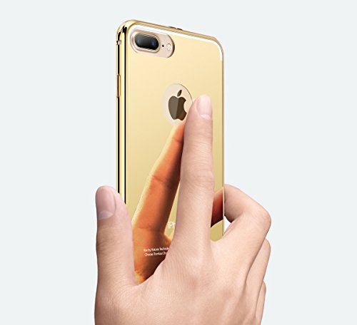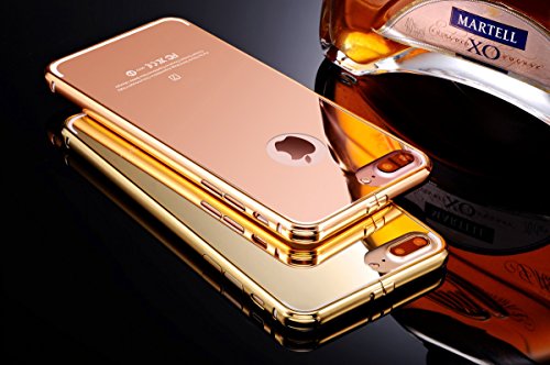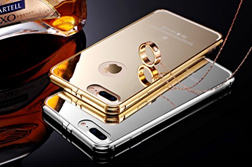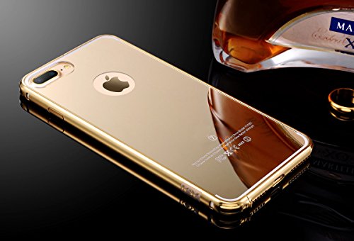 iPhone 7 Plus Gold Mirror Case with Bumper, Miniko(TM) Luxury Anti-scratch Ultra thin Mirror Metal Aluminum Frame Case [Aluminum Metal Shockproof] [Mirror Back] for iPhone 7 Plus Golden