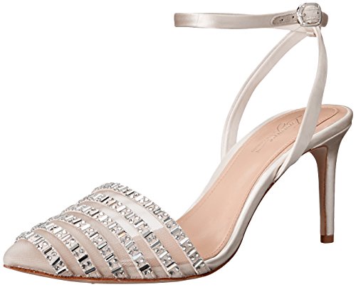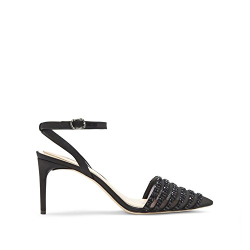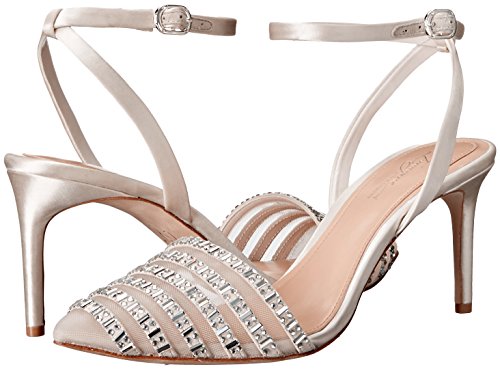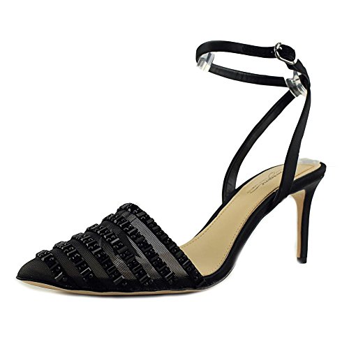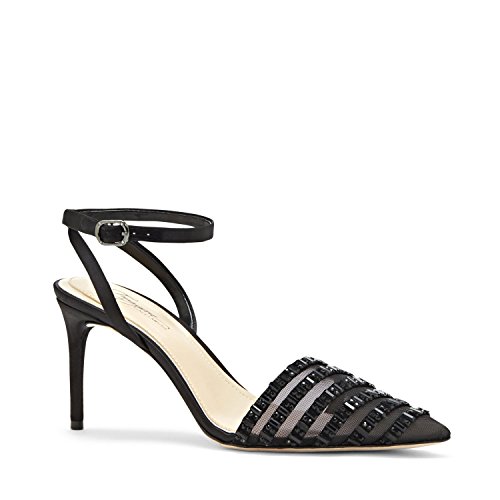Product DescriptionMid heel ankle strap pump with beaded front0