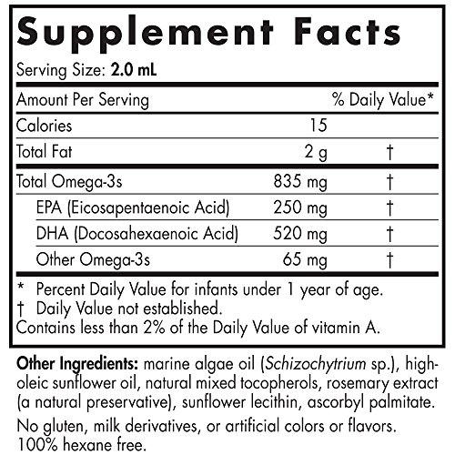 Baby's DHA Vegetarian Liquid is omega nutrition for infants. Made from microalgae, nature's original source of marine omega-3s, and sourced from the cleanest waters to support healthy development without the use of fish. Baby's DHA is sourced ethically and formulated to be safe for infants six months and older.