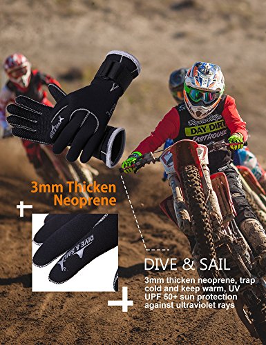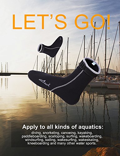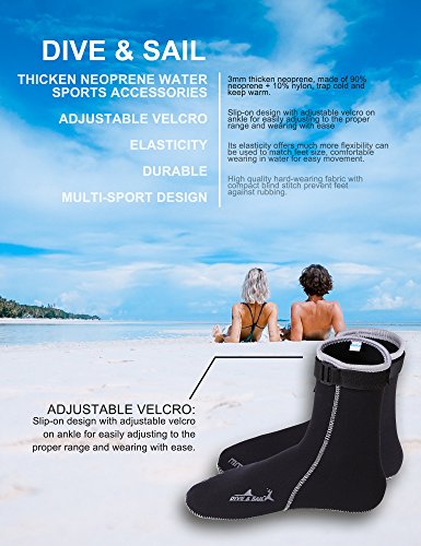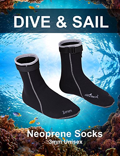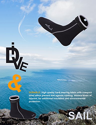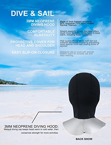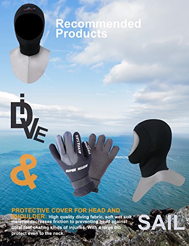 Specifications:Usually a wetsuit has no covering for the feet, hands or head, and the diver must wear separate neoprene socks, gloves and hood for additional insulation and environmental protection. Special socks, gloves and hood are worn when diving. These suits are normally made of foamed neoprene and are similar to wetsuits in construction and appearance, but they do not fit as closely by design. The wrists and ankles of the suit are open, allowing water to flush out of the suit.SPECIAL DESIGN FOR SAFE USES: DIVE SAIL Accessories with purpose for your safety in water. DIVE SAIL diving gloves with adjustable velcro, nonskid drop rubber particles in hands, DIVE SAIL diving hood is slip-on vented bib, DIVE SAIL diving socks is adjustable to fit your feet. Wetsuit usually complemented by neoprene socks, gloves and hood.Apply to all kinds of aquatics: diving, snorkeling, canoeing, kayaking, paddleboarding, scalloping, surfing, wakeboarding, windsurfing, sailing, wakesurfing, wakeskating, kneeboarding and many other aquatics. Do you know how to clean neoprene accessories?They can be cleaned with neutral detergent, hang dry in the shade, dry off for tucked preservation. Good habits of using neoprene accessories can extend their service life. :) 0 |