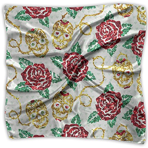 (SkySilky)/Accessories/Cold Weather Accessories/DIRECT FROM USA/Sugar Skulls Rose Durable Classic Women's Silky Scarf Square Cowboy Bandanas Single Pack
