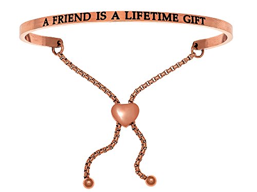 -. Title : Intuition Stainless Steel Pink Finish "a Friend Is a Lifetime Gift"adjustable Friendship Bracelet