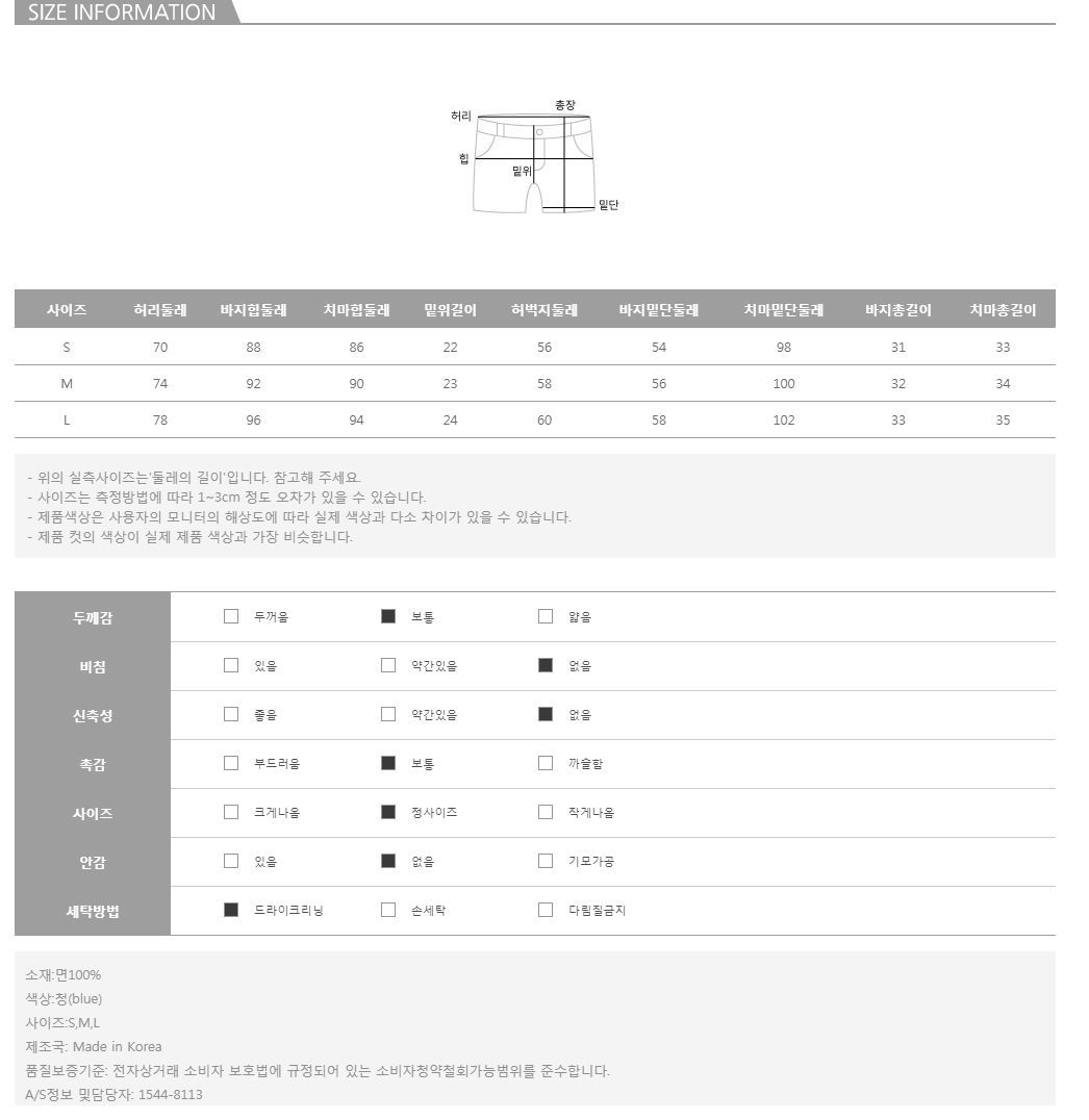 모델의 착용 컬러/사이즈는 청/S 입니다.