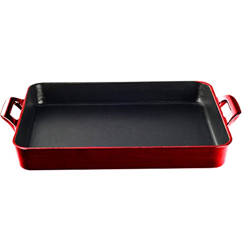 -. Title : La Cuisine LC 8100 1 Piece Shallow Cast Iron Roasting Pan with Enamel Finish, Red