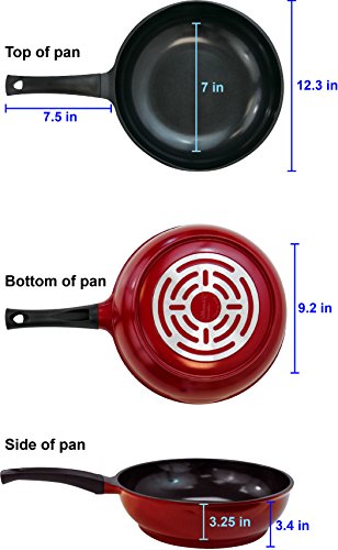 With the Flamekiss 12" Red Ceramic Coated Nonstick Wok by Amorè Kitchenware, you are in for an excellent stir-fry experience. The nano ceramic nonstick coating allows you to cook with little to no oil, while the cast aluminum design ensures even heat distribution. The wok can be used on gas and electric stove-tops and is dishwasher safe. A molded lip on one side guides scooping and pouring from the wok.