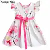 Kseniya Kids Baby Girls Dresses Floral Print Bow Knot Designer Children Girl Summer Beach Casual Dress USD 7.90-9.50