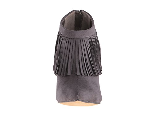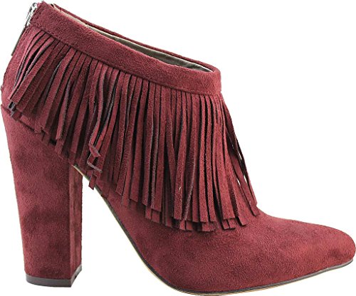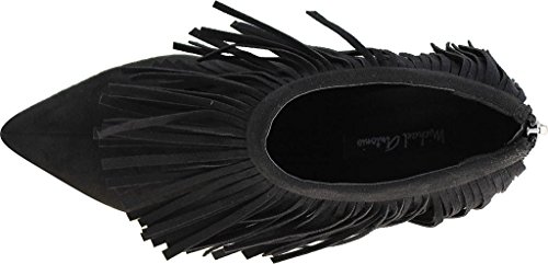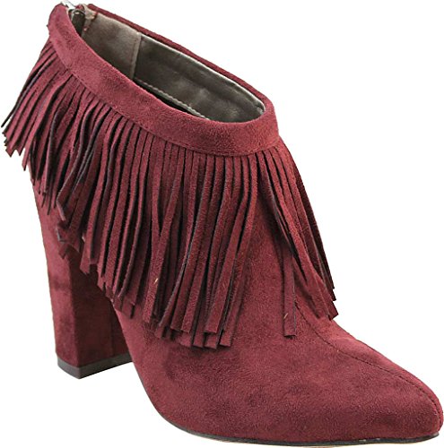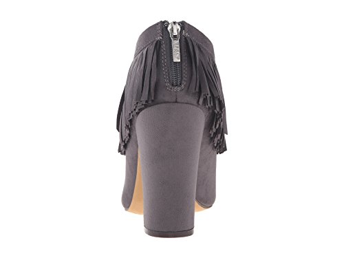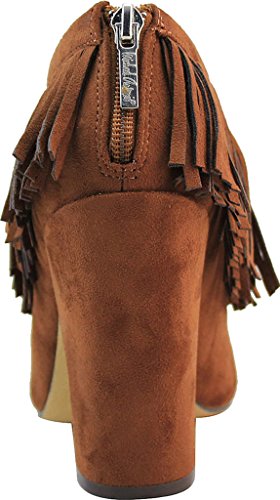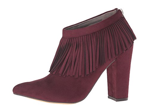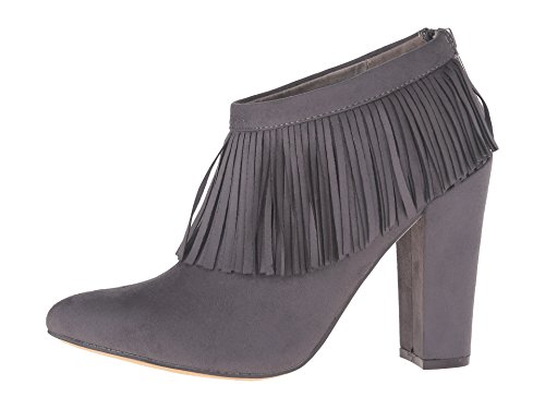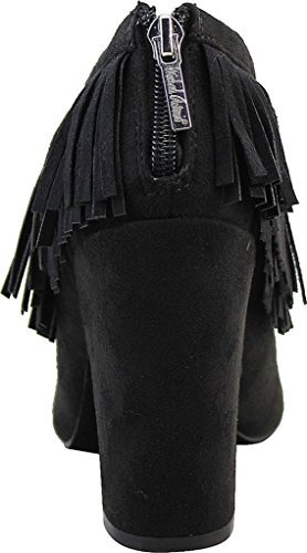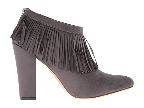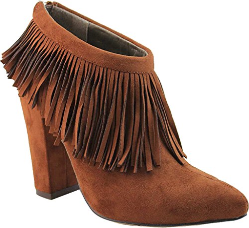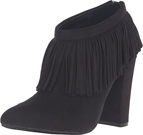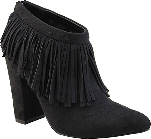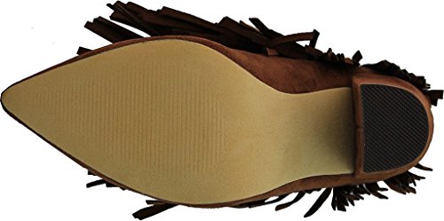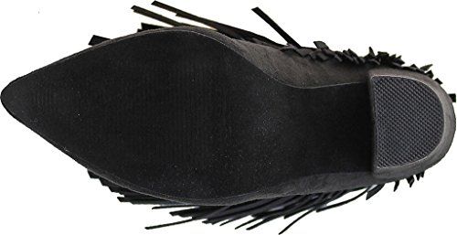Product DescriptionUpper made of textile with fringe detail. Textile lining. Lightly cushioned insole. Pointed toe. Wrapped chunky heel. Synthetic sole. Imported.0