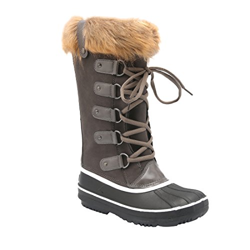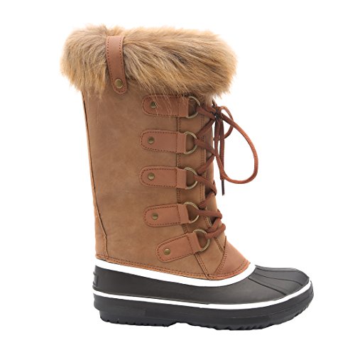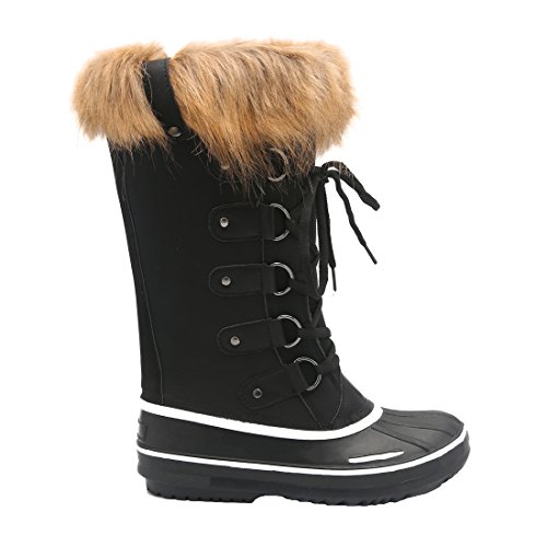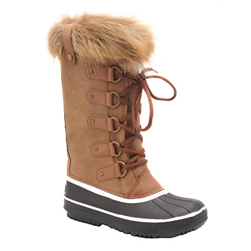 Product Description Keep your feet comfortable all day in the duck boots. Featuring front lace up with metal D-ring hardware, faux fur snow cuff, waterproof outsole. Finish with low heel and cushioned footbe for all day comfort. 0