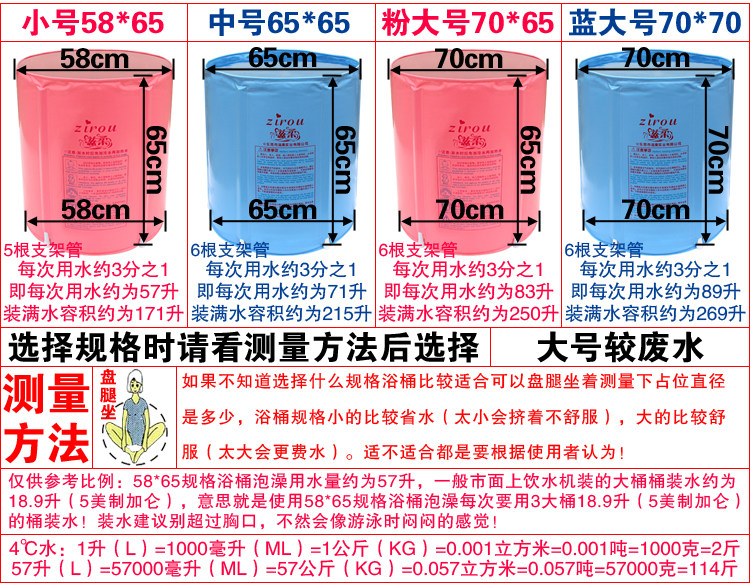 Medium 65 * 65: Applicable height below 170, weight below 70KG