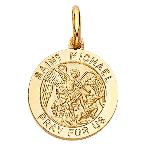 -. Binding : Jewelry -. Brand : The World Jewelry Center -. Department : mens -. Feature : Size : 18 mm x 15 mm / Guaranteed 14k Real Gold and "14k" Stamped / NO gold plated or filled / "NO Question Asked" 30-day Return Policy. / Promptly Packaged with Free Gift Box -. MPN : 4AYMM4O -. PartNumber : 4AYMM4O -. ProductGroup : Jewelry -. ProductTypeName : FASHIONNECKLACEBRACELETANKLET -. Title : 14k Yellow Gold Religious Saint Michael Medal Charm Pendant