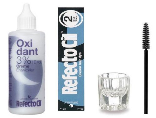 -. Title : Refectocil KIT - Blue Black Cream Hair Dye + Creme Oxidant 3% 3.4oz + Mixing Dish + Mascara Brush