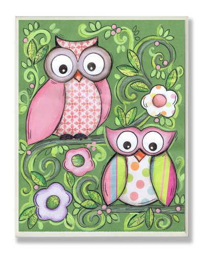 The Kids Room by Stupell Pair of Owls with Green Floral Background Rectangle Wall Plaque