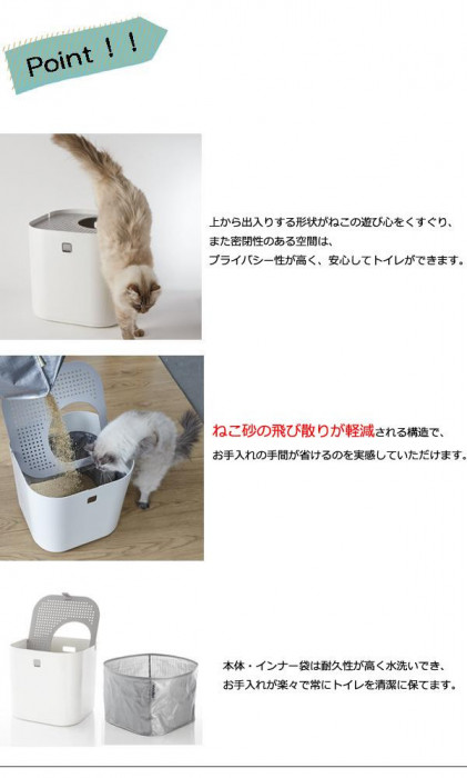 | 上から出入りするタイプのスタイリッシュなねこ用トイレ。 |