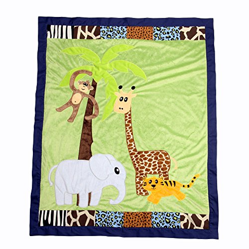One Grace Place Jazzie Jungle Boy Infant Crib Bedding, Light Blue/Navy Blue, 4 Piece