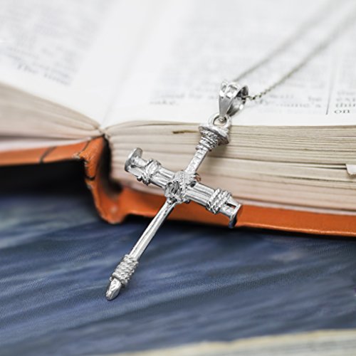 -. Title : Sterling Silver Rope & Nail Cross Necklace Pendant with 18" Box Chain