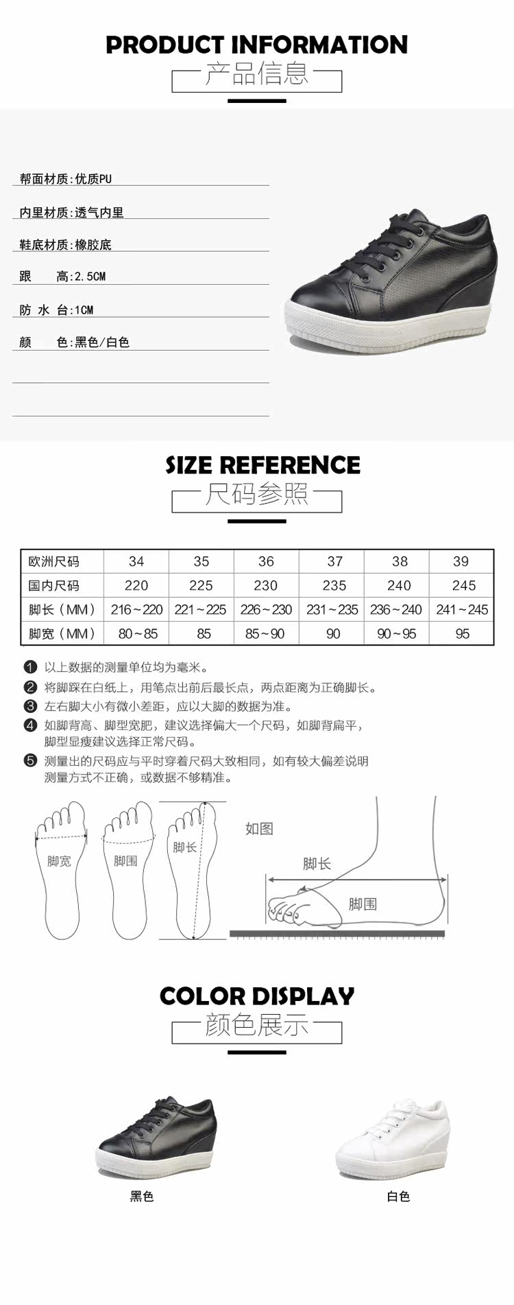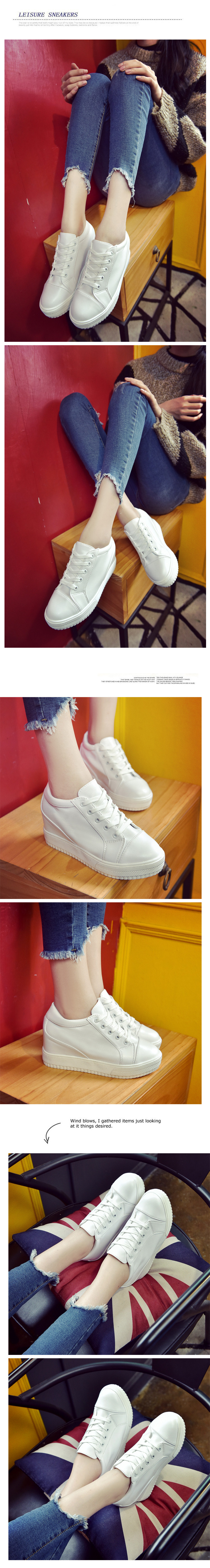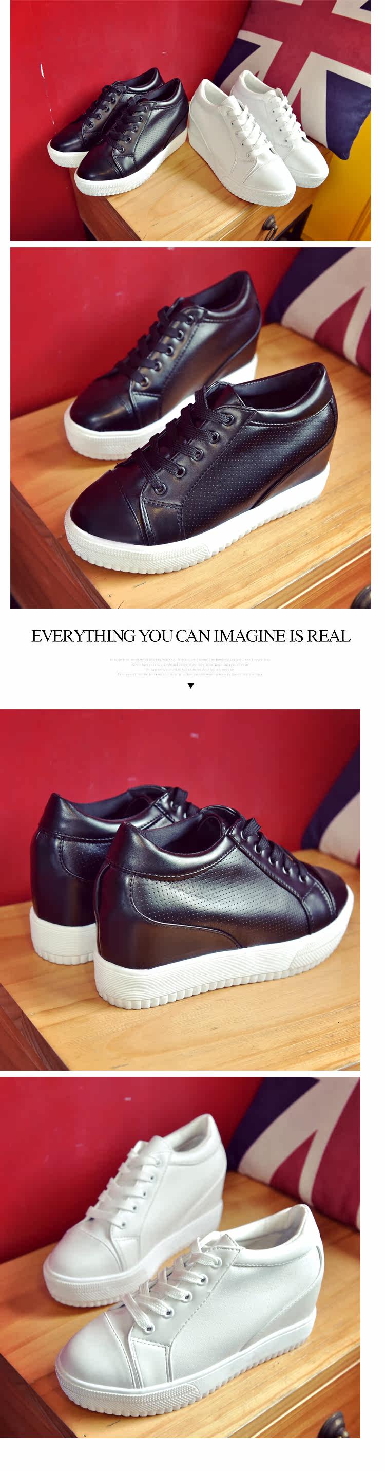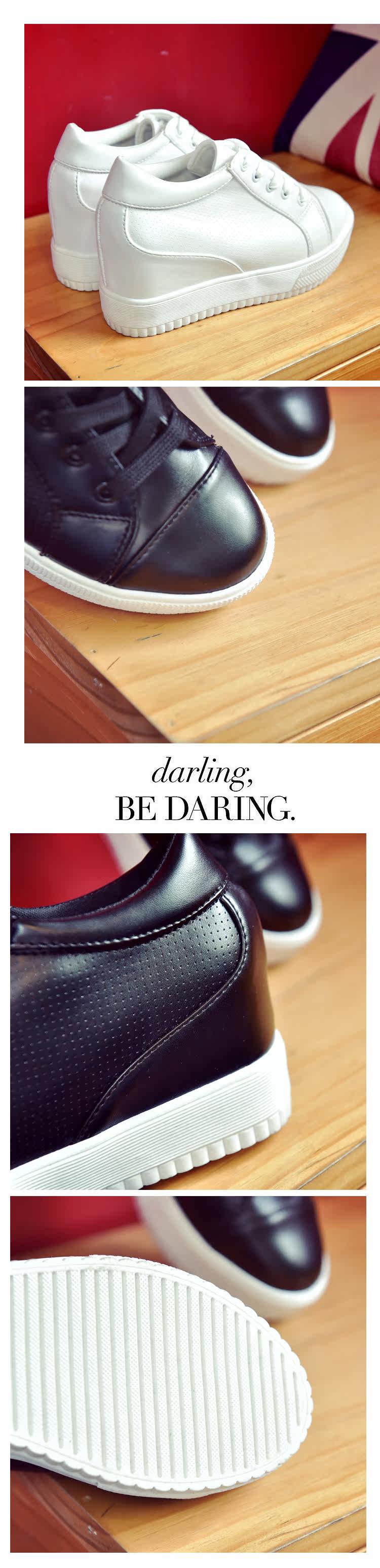 春秋季休闲鞋女内增高女鞋小白鞋透气系带运动鞋坡跟厚底高跟单鞋