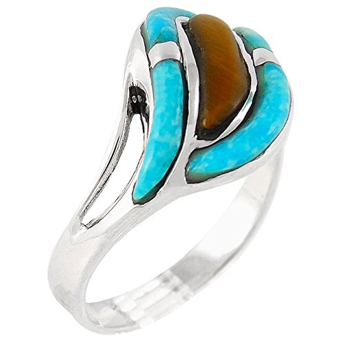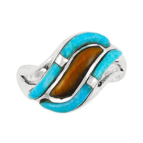 -. Title : Genuine Turquoise & Tiger Eye Ring in 925 Sterling Silver Size 5 to 12 Designer Look