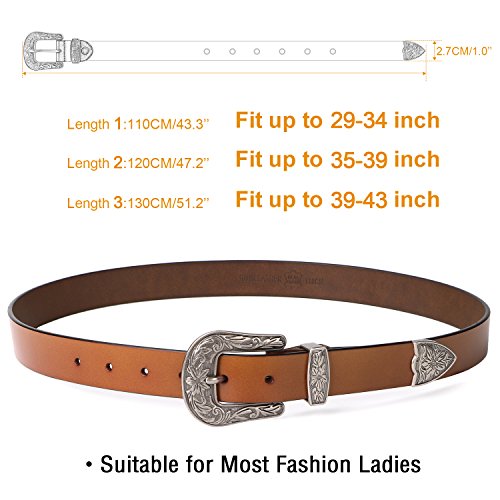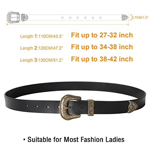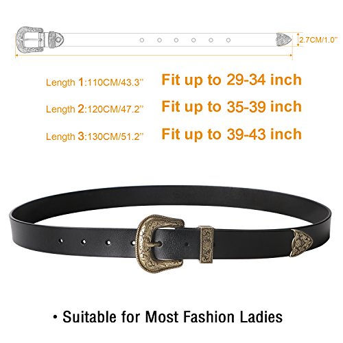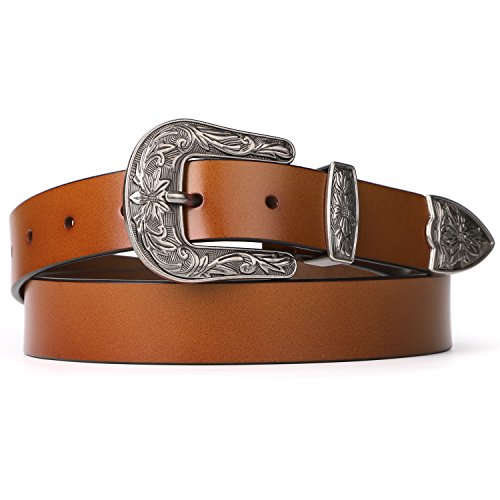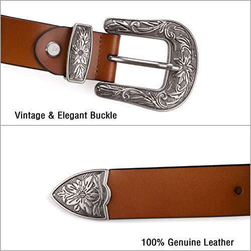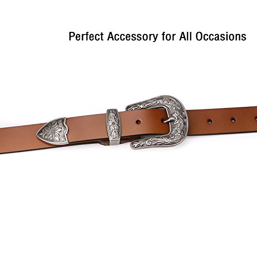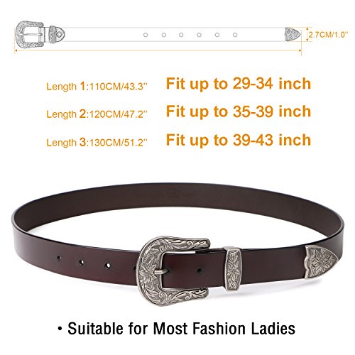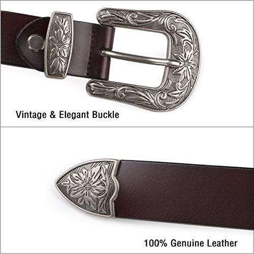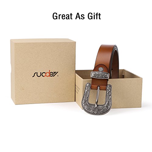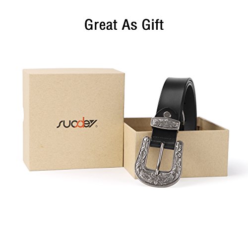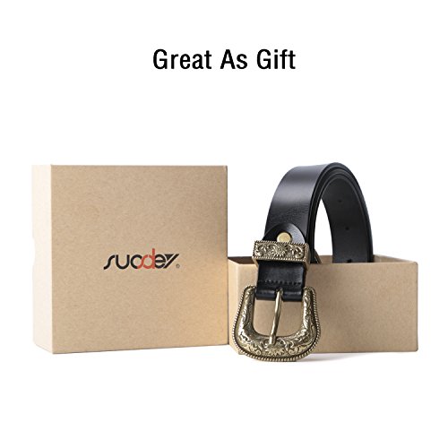 Binding : Apparel Product Description About Us SUOSDEY is one of the most desirable fashion brands, which is dedicated to providing happy online shopping experience to our customers. We aim to bring high quality belts for everyday wear, with affordable price, quick delivery and good service. Your satisfaction has always been our top priority. About the Belt Here is a belt that is sure to get some attention! This vintage leather belt for women is the finishing touch to your outfit. A great accessory for any fashion styles in any seasons. These belts are available in black, coffee and brown. You can choose from 3 colors according to your outfit. This Retro Elegant designed belt with floral carved buckle is the hottest trends. Great for both casual and dressy wear, a good match your favorite pair of Jeans, any casual pants or cowgirl style. This gorgeous women leather belt is made of high quality genuine leather, which is quite soft and comforable, also very durable ,can last you for years. About the size Belt length: 110cm/43.3',Width: 2.7cm/1.0'. Suit for waist from 27-32 inch. Can be trimmed: If the belt is too long for you,you can cut to fit your size with the hole pouch. All-round Service Warranty SUOSDEY promise your 100% satisfaction. We stand behind every single product we sell, and always try our best to provide every esteemed customer pleasant shopping experience. Any questions before and after sale will be responded in 12 hours with satisfied solution, enable you risk-free purchase in SUOSDEY store. 0