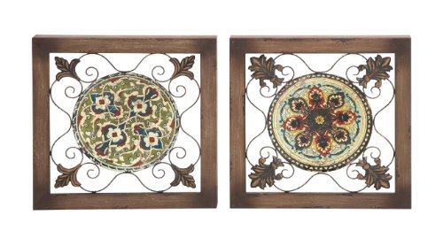 Benzara Attractive Metal Wood Wall Plaque, 2 Assorted Colors