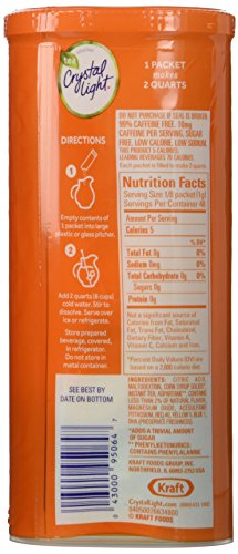 -. Binding : Grocery -. Brand : Crystal Light -. EAN : 0043000950647 -. Feature : Case of six 1.4-ounce canisters of low-calorie, iced tea mix (6.4 total ounces) / Sugar-free, iced tea-flavored drink mix that turns ordinary tasting water into a flavorful, low-calorie soft drink / 90% less calories than leading soft drinks / Contains just five calories and zero net carbs / Offers all the benefits of water plus a refreshing light taste -. Label : Crystal Light -. Manufacturer : Crystal Light -. NumberOfItems : 6 -. PackageQuantity : 6 -. ProductGroup : Grocery -. ProductTypeName : GROCERY -. Publisher : Crystal Light -. Studio : Crystal Light -. Title : Crystal Light Iced Tea, With Lemon Flavoring 1.4-Ounce Unit (Pack of 6) -. UPC : 043000950647