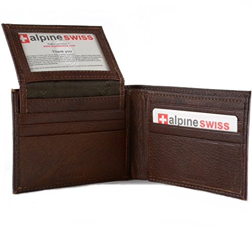 -. Binding : Apparel -. Brand : Alpine Swiss -. Color : Black -. Department : mens -. Feature : Measures 4 1/2" x 3 1/2" x 1" / Separated Bill Compartments allow you to keep the large bills put aside. / Multiple Card slots and additional Pockets. Removable ID Window on the inside top Flap. / Alpine Swiss Mountain Logo Inside, Cross Mark Outside / With 7 stitches to 1" this is a well crafted and durable wallet. -. Label : alpine swiss -. Manufacturer : alpine swiss -. Model : By Alpine Swiss -. MPN : 135-PARENT -. PackageQuantity : 1 -. PartNumber : 135-PARENT -. ProductGroup : Apparel -. ProductTypeName : ACCESSORY -. Publisher : alpine swiss -. Studio : alpine swiss -. Title : Alpine Swiss Men's Leather Bifold Wallet Removable Flip Up ID Window