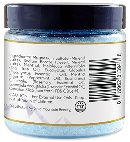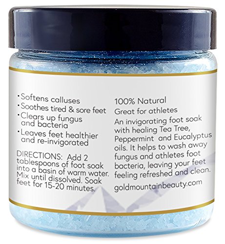 Our Huge 16 Oz. Tea Tree Oil Foot Soak contains 100% pure essential oils like Australian Tea Tree Oil and a blend of peppermint, eucalyptus, rosemary and lavender. Epsom salts (mineral salts) are rich in magnesium and relax tired, aching feet.Bullet-Proof 100% Money Back Guarantee