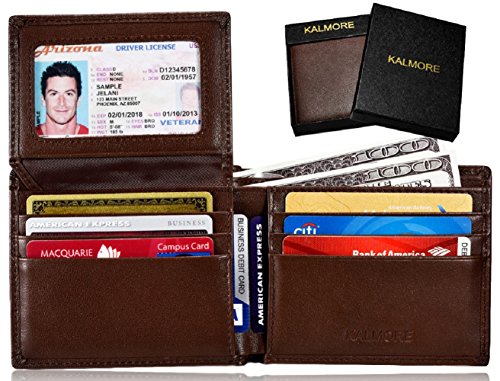 -. Title : KALMORE Men's Genuine Leather RFID Blocking Flip-ID Window Travel Bifold Wallet - in Gift Box for Thanksgiving and Christmas Gift