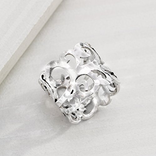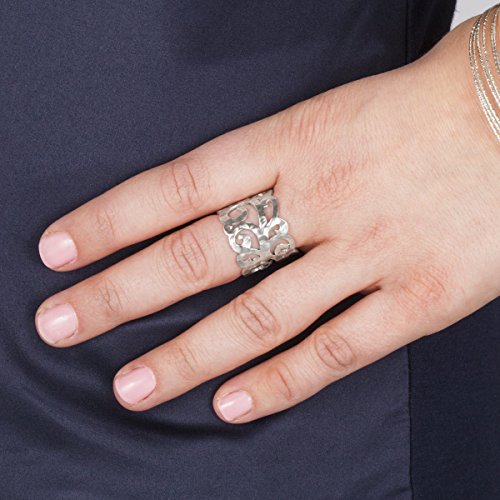 -. Feature : Organic swirls of hammered sterling silver create cutout designs all around this Eden Band Ring / ENDLESS DREAM: If you could dream in jewelry, this would be it! Floral and scrolling patterns inspire this jewelry crafted with pearls, Swarovski crystal and sterling silver. Give your ensemble a touch of elegance and romance with a jewel like this, whether it's a delicate sterling silver necklace, ring, strand of white pearls or a mix of all three. Wear one of these dreamy jewels to channel your feminine side and accessorize your most romantic ensemble. / HAMMERED-FINISH STERLING SILVER: Pieces featuring a hammered-finish are perfect for those looking for jewelry with a little less shine and a little more sophistication, making them perfect for an office or an alternative, bohemian look; this hammered-finish sterling silver piece comes with a ".925" sterling silver stamp as a symbol of guaranteed product quality / Ring face measures 5/8 inches in width / Imported