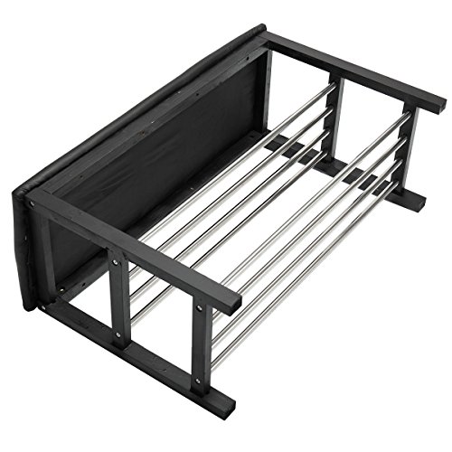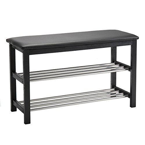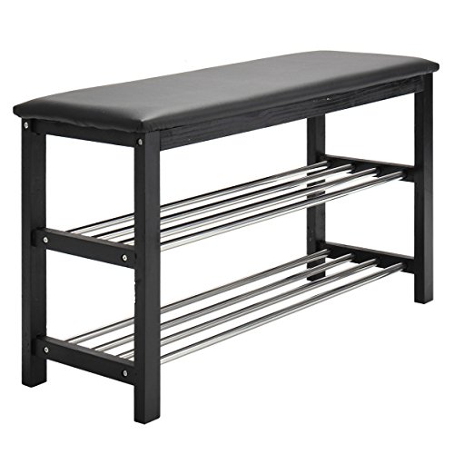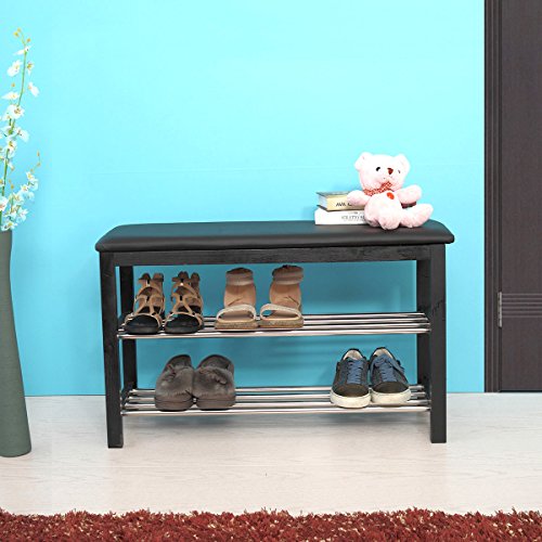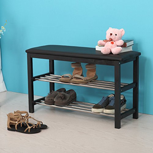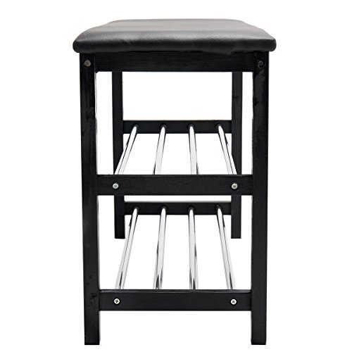 -. Title : LAZYMOON Black Wooden Shoe Racks Freestanding Bench Entryway Seat Storage Organizer