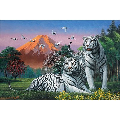 It contains lots of lucky elements (White tiger / Shochiku Mei / Red Fuji / Yachi Tsuru / Yellow flower) with her married White Tiger couple.