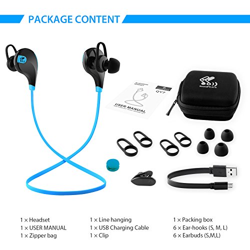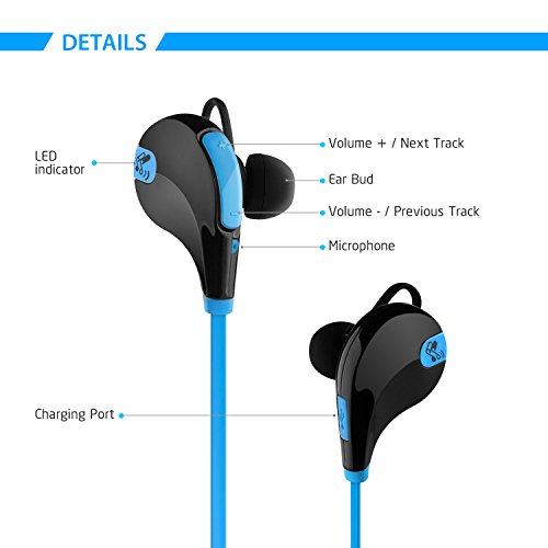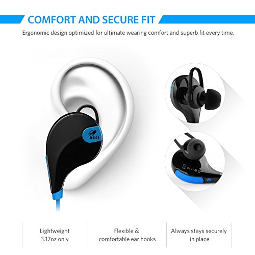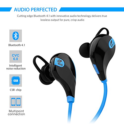 SoundPEATS Wireless Earbuds In-Ear Stereo Bluetooth Headphones with Mic for Sports Running(CVC6.0 Noice Reduction, Bluetooth 4.1, 6 Hours Play Time, Sweatproof) - Black&Blue