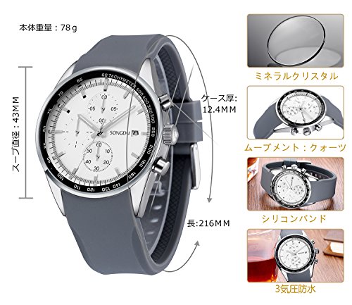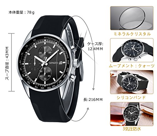 원본상품명: SONGDU メンズ 腕時計 クロノグラフ アナログ シリコンバンド ビジネス クォ?ツ ウォッチ [?行輸入品]