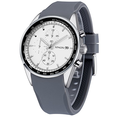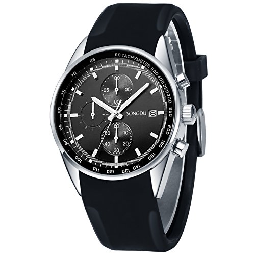 SONGDU 맨즈 손목시계 크로노그래프 아날로그 실리콘 밴드 비지니스 쿼츠 워치 [병행수입품]