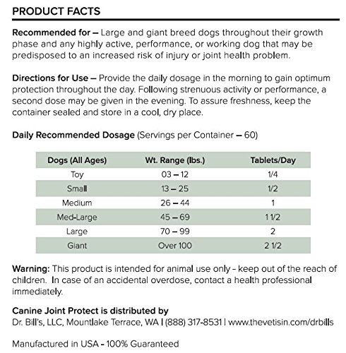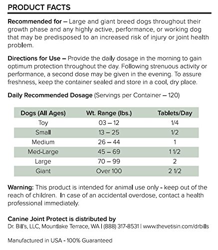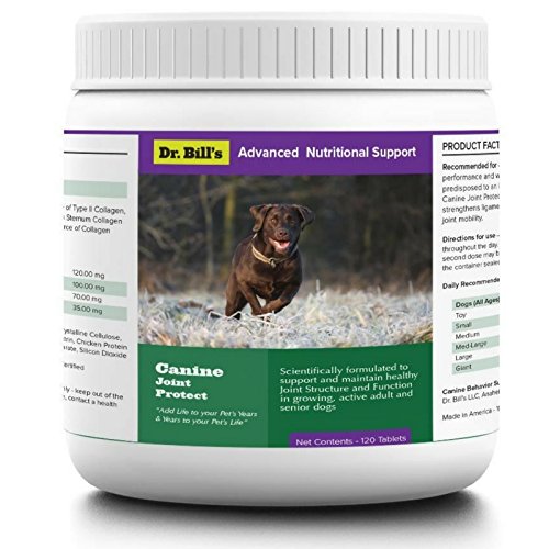 -. Binding : Misc. -. Brand : Dr. Bill's -. Label : Dr. Bill's -. Manufacturer : Dr. Bill's -. PackageQuantity : 1 -. ProductGroup : Pet Products -. ProductTypeName : PET_SUPPLIES -. Publisher : Dr. Bill's -. Studio : Dr. Bill's -. Title : Dr. Bill's Canine Joint Protect Pet Supplement - Joint Supplement for Dogs with Type II Collagen, Hyaluronic Acid, and L-Glutamine
