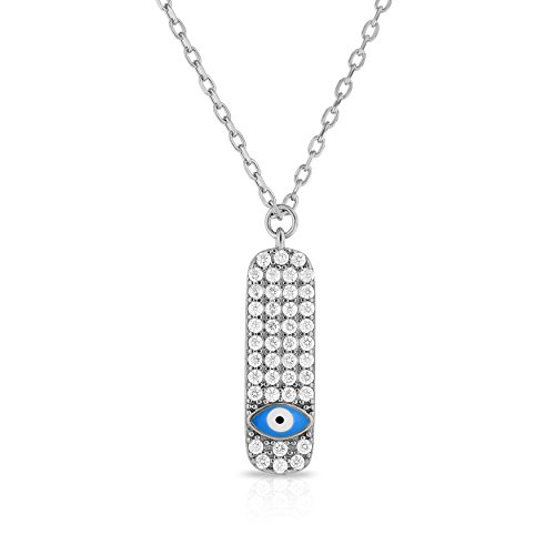 -. Binding : Jewelry -. Brand : Unique Royal Jewelry -. Color : Silver -. Department : womens -. Feature : Stylish Sterling Silver Sparkly Cubic Zirconia And Evil Eye Expandable Length Necklace. / There are 41 Cubic Zirconia Stones Pave set with 0.50 CTW. / Link chain is 1.0mm in width. Total Sterling Silver Weight is 2.5 gr. / Necklace can be adjusted to any length between 16" and 18" to fit your preference and style. / Elegant Gift Box Is Included. -. Label : Unique Royal Jewelry -. Manufacturer : Unique Royal Jewelry -. ProductGroup : Jewelry -. ProductTypeName : FASHIONNECKLACEBRACELETANKLET -. Publisher : Unique Royal Jewelry -. Studio : Unique Royal Jewelry -. Title : Sterling Silver CZ Evil Eye Pave Bar Necklace And Pendant With Continuous Adjustable Length 16"-18"