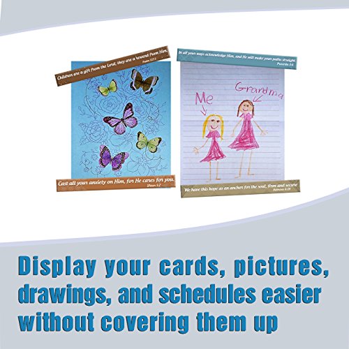 - MAGNETIC BIBLE VERSES STRIPS: These magnetic verse strips are the perfect rectangular strip size to hold up pictures and papers without covering anything up. They are not only narrow enough to keep from blocking what you post on your fridge, but they are also strong enough to keep papers and projects in place.