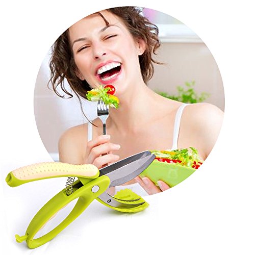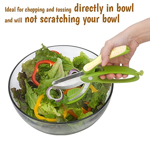 - Most Innovative 2-in-1 Kitchen Scissors for Cutting, Chopping and Tossing - With Pro Toss and Chop(TM), you can cutting, chopping and tossing your cucumbers, onions, tomatoes, mushroom, peppers and more into desired slices easily and quickly without scratch in your bowl.