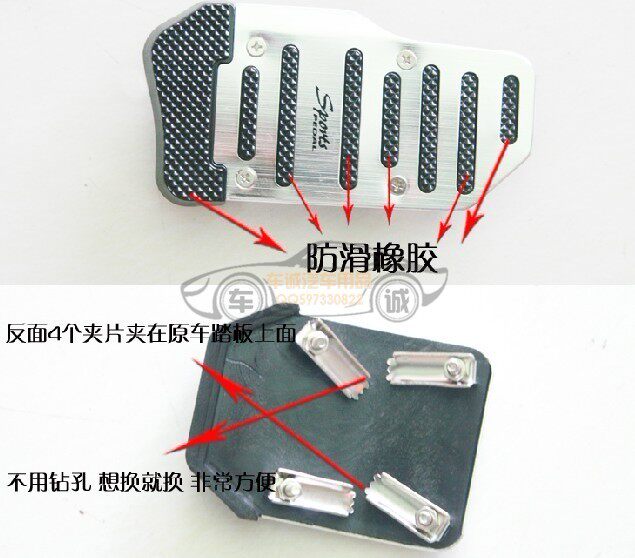 1, the product is simple to install and easy to operate, each piece is equipped with fixed pedals have screws, simple tools, you can easily get yourself: according to assembly drawing behind the product, the pedal retaining piece of metal with matching clip and screws , fixed to the top of the existing pedal, without drilling in the original pedal. Applies to most models, pedal after purchase larger models Measure