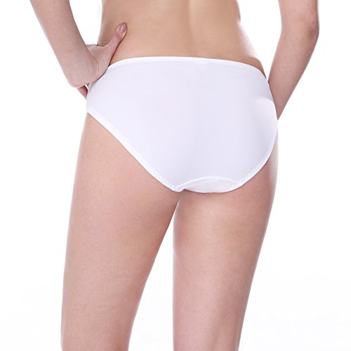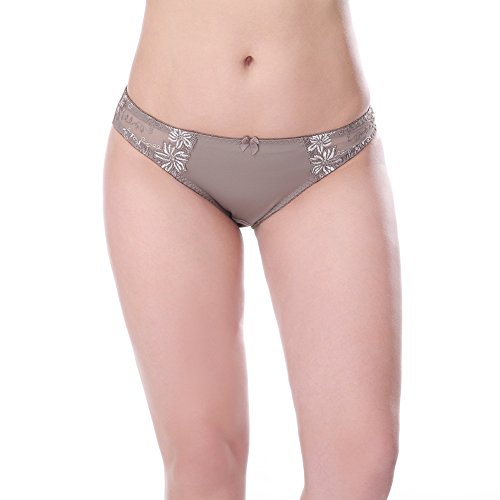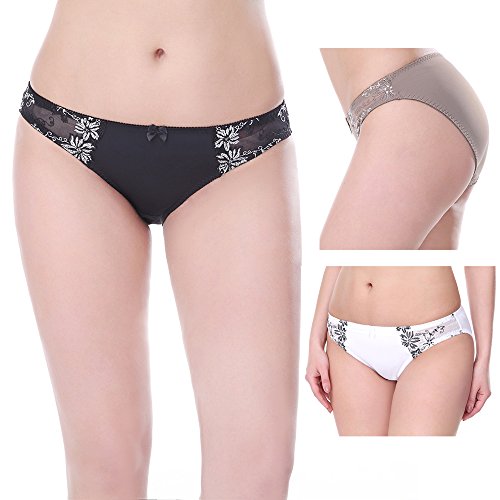 -. Feature : Stunning satin Bikini panties for a daring, super-sexy look / Pack of 3 assorted colors - black, white, gray / Floral lace embroidery and cute bow detail / 88% Nylon, 12% Spandex with cotton gusset for exceptional comfort / Available in sizes S, M, L, XL, 2XL